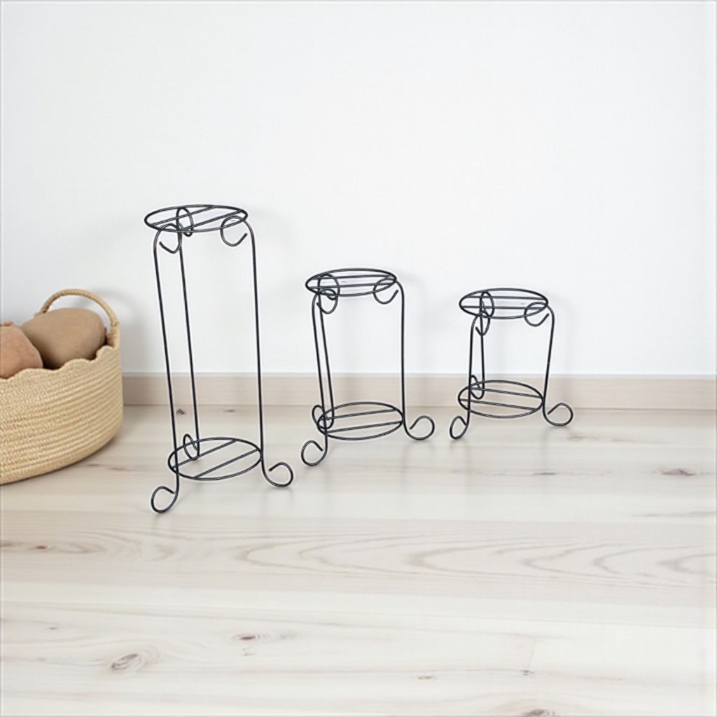 O conjunto inclui 3 suportes arabesco em ferro resistente, ideais para decorar e sustentar vasos em paredes, jardins, varandas ou áreas externas.