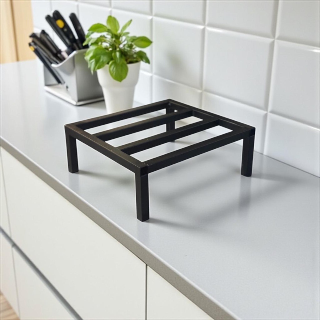 Suporte em ferro metalon resistente, ideal para panelas, formas e pizzas. Com medidas de 32x32cm e 11cm de altura, é perfeito para uso em restaurantes, pizzarias, lanchonetes e também em casa.